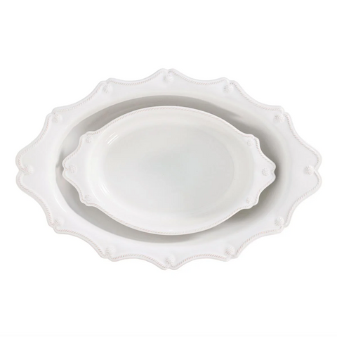 A space-efficient nesting set that’s as pretty as it is practical! Our abundantly sized 18” oval baking dish boasts a striking scalloped rim to frame whatever triumph you bake and serve up for large crowds on holidays, special occasions, and weekends. Pair it with our 11” oval baking dish, designed to complement and nestle neatly inside for fabulous, functional storage in your cupboard.