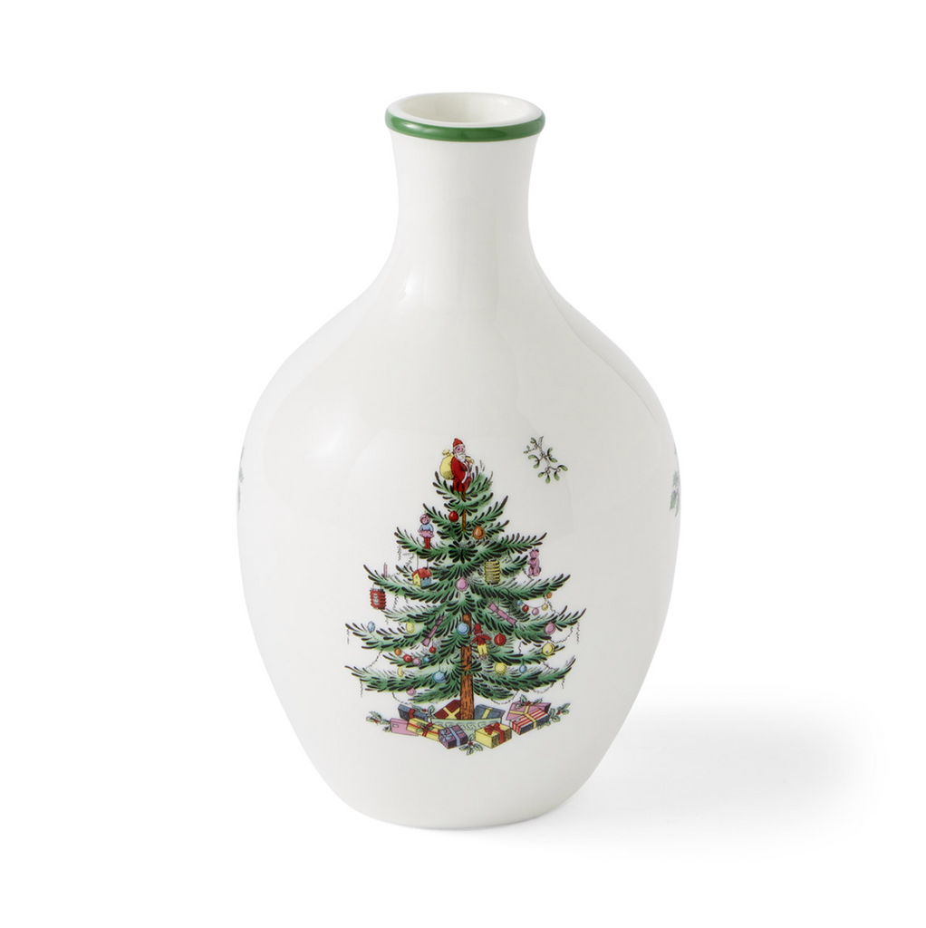 Bring festive charm to every corner of your home with this Christmas Tree Posy Vase. Dainty in size, it's ideal for displaying fresh sprigs of festive foliage or a single, elegant flower. Featuring the much-loved Spode Christmas Tree design on either side along with a festive green rim, this curved vase makes a wonderful addition to your Christmas décor. Style it on your desk, mantelpiece, side table or windowsill or give as a gift to someone special.
