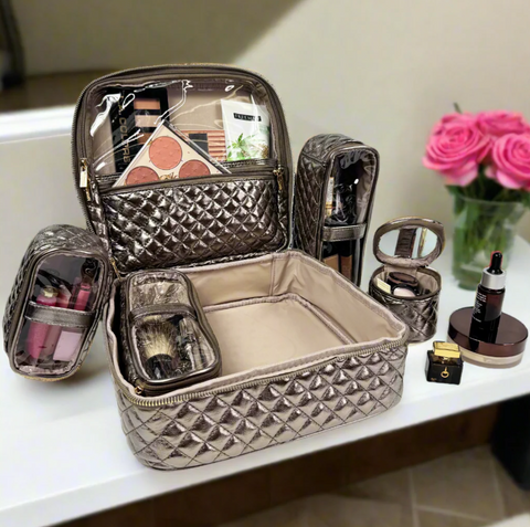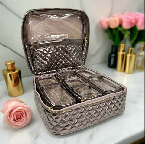 The Mini Diva Makeup Case is a medium makeup case that is the ultimate organizer perfect for divas & jet setters with a lot to carry when they travel. This travel case has 4 removable cases idea for organizing eyeshadows, foundations, brushes, mascara, lipstick, powders & so much more.