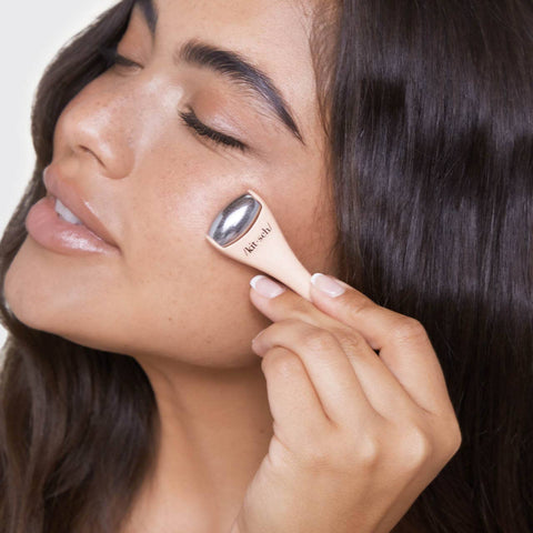Kitsch Mini Eye & Face Rollers take your routine to the next level and rejuvenate your skin with the perfect roller duo! Benefits: -Powerful benefits packed in a mini size - designed to fit into the small contours of your face & perfect for your delicate eye area -Silicone roller massages the skin and promotes healthy blood circulation & lymphatic drainage -Grooves in the silicone help to massage the skin and relieve stress & tension headaches -Smooth metal roller provides cooling effect and soothes tired, puffy eyes and inflammation -Use in combination with your favorite products to allow for deeper penetration and application -Includes a soft velvet pouch for easy storage or on-the-go luxury