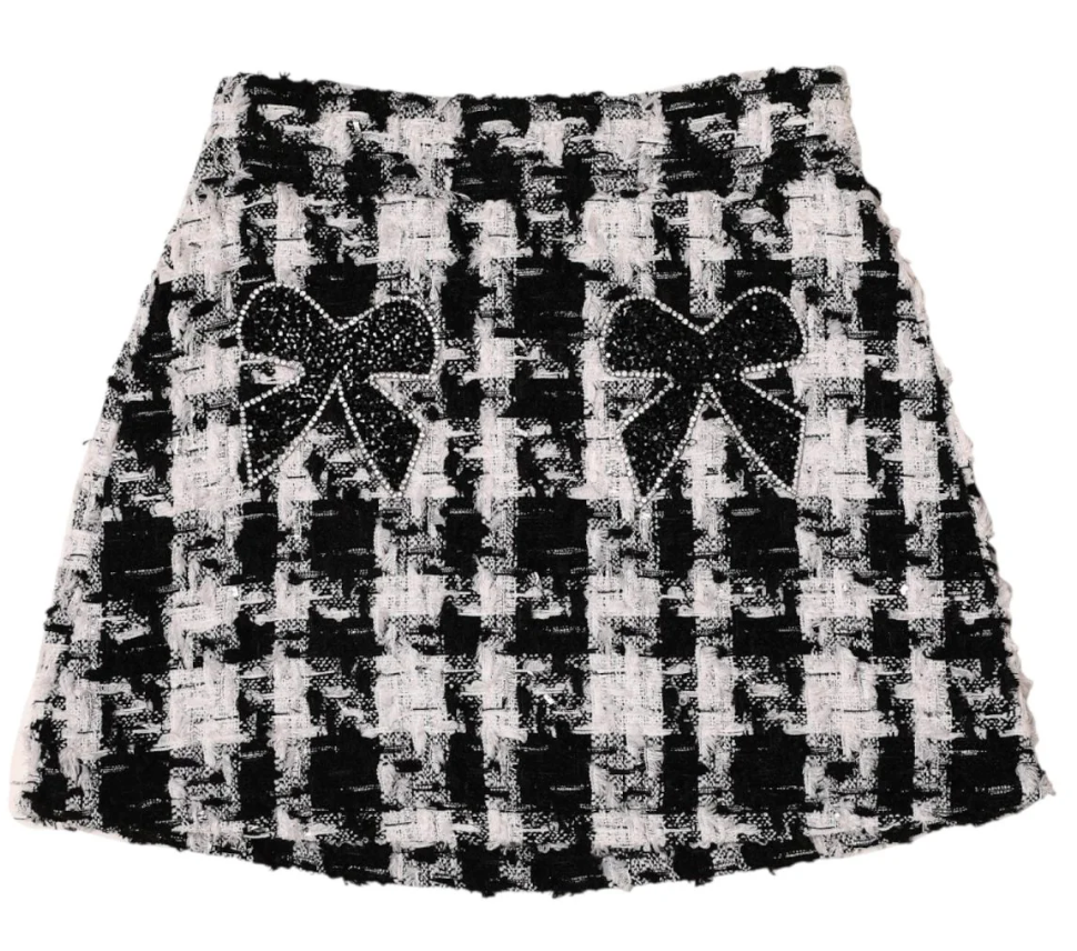 Keep her looking chic with this Mia New York skirt. Textured tweed fabric gives it plenty of upscale attitude, while adorable bow appliques provide the perfect amount of sparkle. Pair it with the matching Mia New York jacket to create a matched set that will never go out of style.