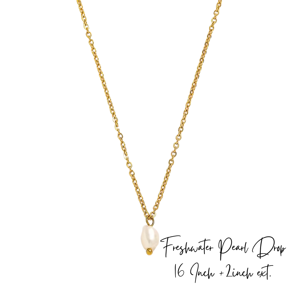 Elevate your style with the Aurora Freshwater Pearl Necklace, a timeless and elegant piece that embodies sophistication. This delicate pearl drop necklace features a luminous freshwater pearl suspended from a sleek 18k gold-plated stainless steel chain, making it a perfect accessory for minimalist jewelry lovers and classic elegance seekers. Designed to layer effortlessly or shine on its own, the Aurora Necklace is a versatile must-have for every jewelry collection. Its hypoallergenic and tarnish-resistant design ensures long-lasting beauty, making it ideal for both casual wear and special occasions. Key Features & Design Details Material: * 18k Gold-Plated Stainless Steel: Ensures durability, tarnish resistance, and a lasting golden finish. * Freshwater Pearl: A one-of-a-kind natural pearl, showcasing a unique organic shape and radiant luster. Size: * Chain Length: 16 inches with a 2-inch extender for a customizable fit. * Pearl Size: Varies slightly due to the natural formation of genuine freshw