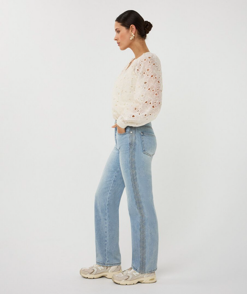 Elevate your wardrobe with this elegant raglan blouse featuring delicate embroidery anglaise detailing. The relaxed raglan sleeves provide comfortable movement while the intricate cutwork embroidery adds sophisticated charm. Perfect for layering or wearing solo, this versatile piece transitions seamlessly from casual days to polished evenings. The breathable fabric and refined design make it an essential addition to any modern closet.