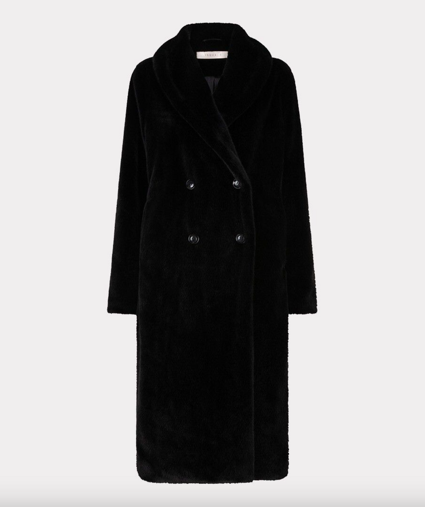 Soft warm double breasted faux fur coat. The coat is available in different colors and is a stylish addition to your fall looks.