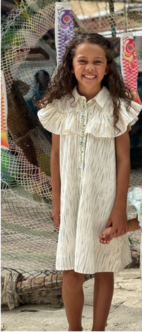 She will stay smart and look cool in our gorgeous shirt dress. The frilled bib with embroidered placket adds a touch of style to make a true fashion statement. The result is a modern twist on a classic design.