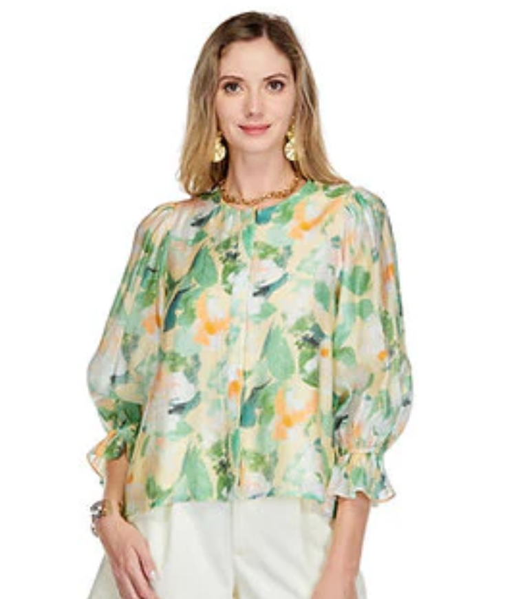 Introducing our Placket Blouse in Brushed Floral-Jade. Made with a luxurious jade fabric and adorned with a brushed floral pattern, this blouse is the perfect choice for a sophisticated and elegant look. The unique placket design adds a touch of style, making it a standout piece in your wardrobe. Elevate your style with this beautiful blouse.