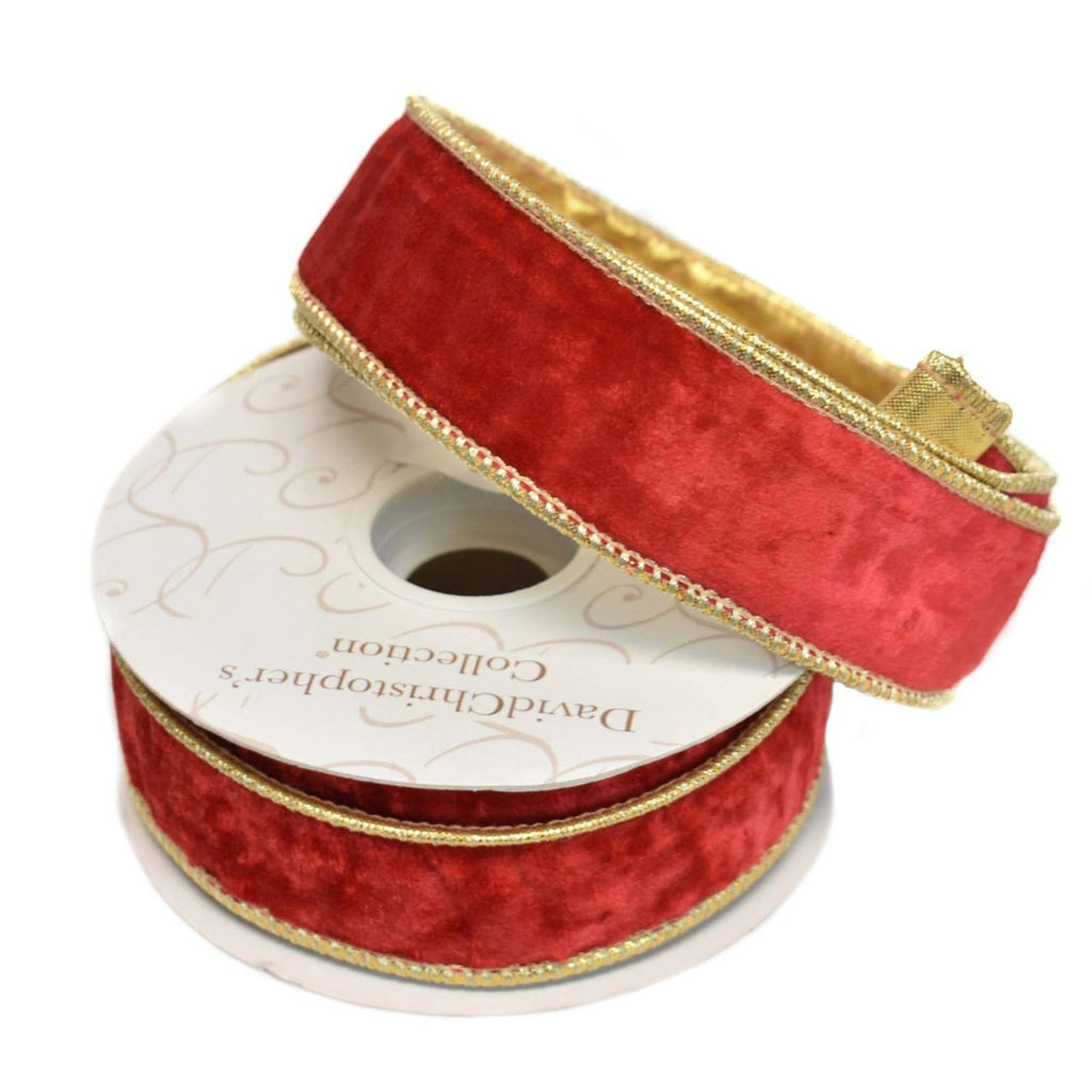 Elegant Red Velvet Ribbon w/ Gold back - 1.5" x 10yd