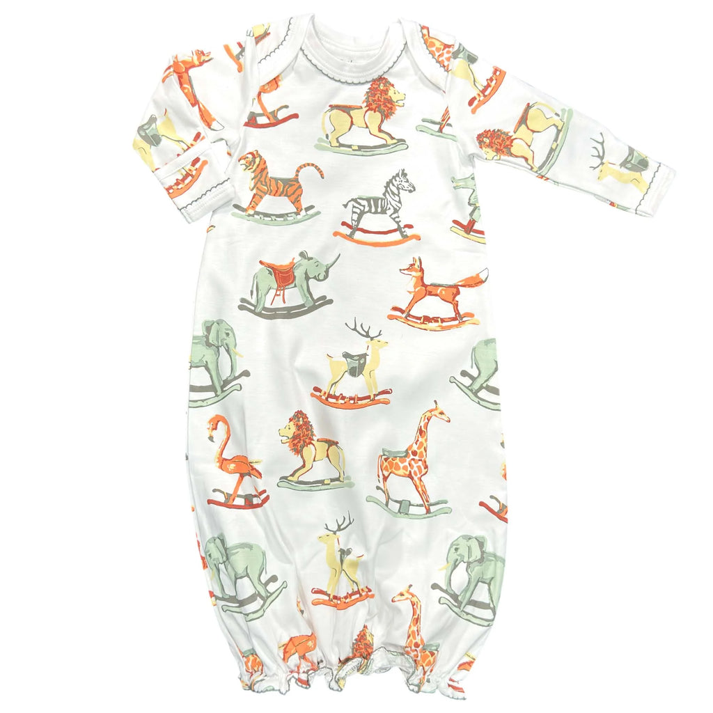 Introduce your little explorer to the wild side of style with the Swaying Safari Gown from Heyward House. This whimsical dress features charming safari-inspired details that spark imagination and adventure. Crafted for comfort and movement, it's perfect for playdates, special occasions, or everyday adventures. The playful design celebrates curiosity and wonder, making it an instant favorite for babies who love to roam and discover. Let your little one's spirit run wild in this delightful gown.