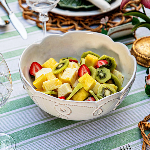 For garden salads strewn with petals to gorgeous tumbles of fresh fruit, this elegant serving bowl is perfectly poised to stand center-stage on any table. Featuring a scalloped rim and the subtle detailing of our romantic Gardens of the World moti