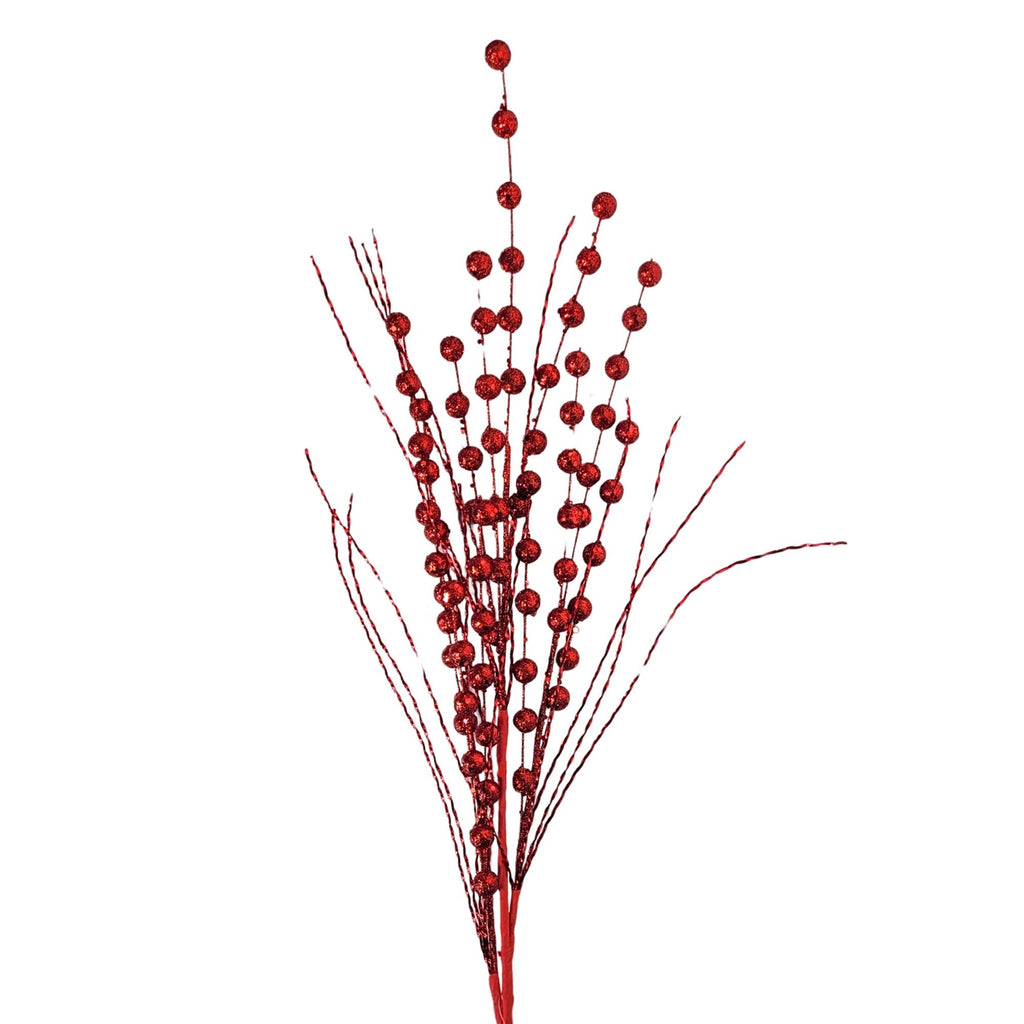 The Metallic Twist Glitter Spray dazzles in festive red with sparkling glitter accents, bringing cheerful shimmer and whimsical flair to holiday displays. Measuring 32 inches, its twisting stems add lively movement and refined sparkle to wreaths, garlands, or centerpieces.