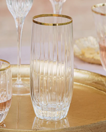 Classic and celebratory, Natalia Gold High Ball features a resplendent golden rim atop a glass reminiscent of cut crystal.