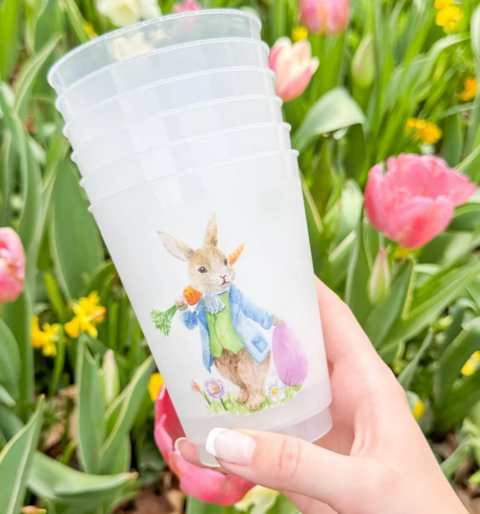 Indulge in a touch of sophistication with our Rabbit & Carrot Frosted Cup. Crafted from shatterproof material, this cup features a spring watercolor print that's sure to elevate your Easter gatherings.