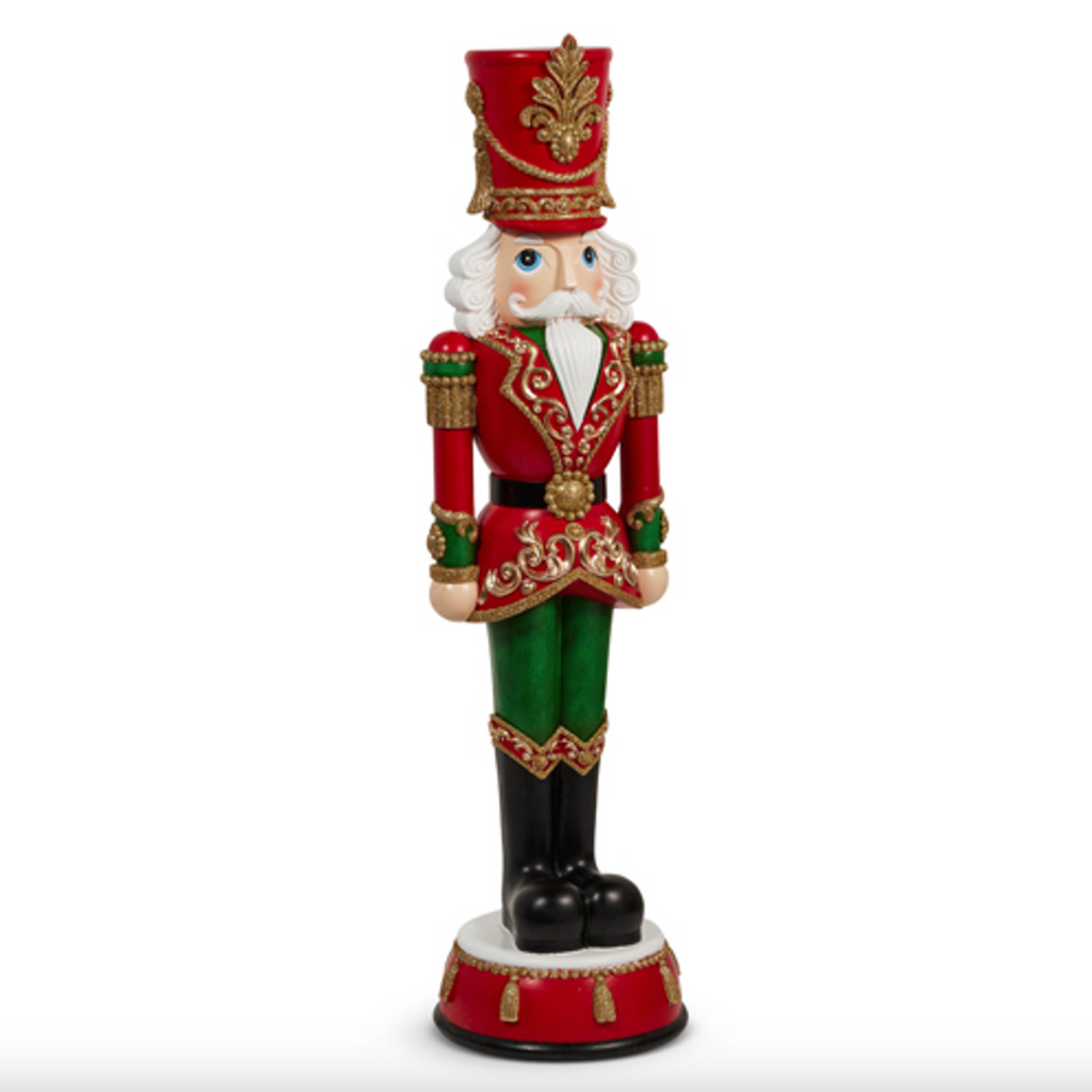 Standing an impressive 36 inches tall, the Raz Red and Green Nutcracker brings classic holiday charm to any seasonal decor. Crafted with intricate detailing and vibrant red and green hues, this traditional nutcracker serves as both a striking centerpiece and a festive collector’s item. Its sturdy construction ensures durability, making it a timeless decoration to enjoy year after year. Perfect for adding a sophisticated touch to your holiday display or mantel.
