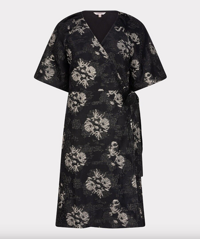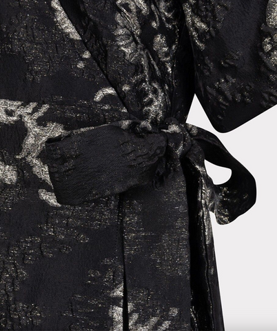 Wrap dress in a beautiful jacquard fabric with puff sleeves.