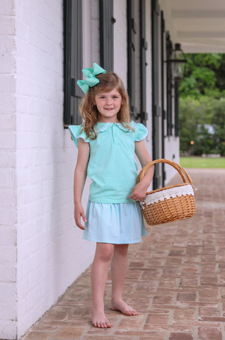Twirl into spring with the Camilla Skort Set in refreshing mint stripe! This adorable two-piece features a coordinating top and skort combo that's perfect for active play or casual outings. The breezy mint and white stripes keep things cool and cheerful, while the skort design gives you the best of both worlds—shorts comfort with skirt style. Whether she's at the park, playground, or just hanging out, this set delivers comfort and cuteness in one package.